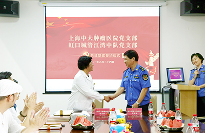 7.1建党节即将到来,中国共产党迎来了百岁诞辰。正值建党100周年之际,上海中大肿瘤医院党支部与虹口城管江湾中队共同携手,签订共建联建协议,签约仪式于6月24日下午在上海中大肿瘤医院行政楼举行。我院党支部书记、院领导以及相关职能科室负责人共同参加了签约仪式。